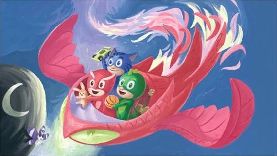 The Astro-Hibou is in many ways identical to the Owl-Glider in it's original appearance from prior to "Heroes of the Sky," except it has eye pupils at its two large headlights, and it has no vehicle hood. And the Astro-Hibou can leave a trail of feathers when flying as its considered one of the three transportation that is used by the Pyjamasques which is half-chimera and half-vehicle.