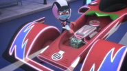 In "Flashcar to the Moon," the Speedy Twins stole a piece of the moon crystal from the Moon Girls and made their Flashcar even more speedier. However, it goes out of control when too many moon crystals are added into the Flashcar's engine, causing it to go haywire.