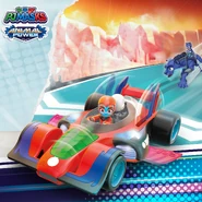 The Flashcar is driven by Carly and maintained by Cartoka. The twins are constantly looking for new parts to further upgrade the car, which is the main reason they came to the city. In their debut episode, the twins managed to steal parts of all the PJ Masks vehicles, and used them to upgrade the car, leaving the PJ vehicles useless. Those upgrades included Owl Wing Tips from the Owl-Glider, protective lizard scales from the Gekko-Mobile, and the wheels from the Cat-Car.