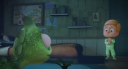 Greg's House is Greg's current residence. His house is located next to Connor and Amaya's homes on the left, and the Milk Shake Shop to the right. The only room of the house that is ever shown in the series is Greg's bedroom. As seen in "Octobella Strikes Again," Greg's bedroom is on the ground floor of the house to the right of the front door. However, in the transformation sequence, Greg is always seen teleporting out of a room on the second floor of his house. Greg shares his room with his pet Lionel. Trivia