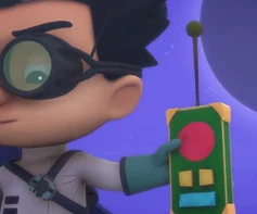 The Hologram Machine is a part of Romeo's remote in "Owlette's Luna Trouble" along with the Tracker Device. The remote can track the PJ Masks, make holograms of Romeo's Lab, control Romeo's Lab, etc.