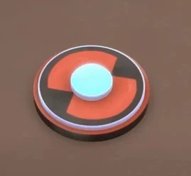 The Holographic Disc is red and black with a glowing blue button in the middle that turns red when activated to play a message.