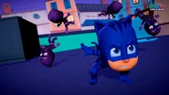 GameplayIn the game, players have to navigate the 3 PJ Masks and their vehicles through various levels based on locations from the tv-series. The main goal in each level is to collect up to 200 gems while dodging obstacles, and ultimately complete the mission related to that level. The level sections in which the player controls one of the heroes are designed like 2D-style platform games, where the players character can move left, right, up and down. The sections where the player controls one of the vehicles are designed like racing games, with the vehicle being seen from behind and moving away from the player, who can steer the vehicle to either left or right. Each of the 3 PJs has special abilities: