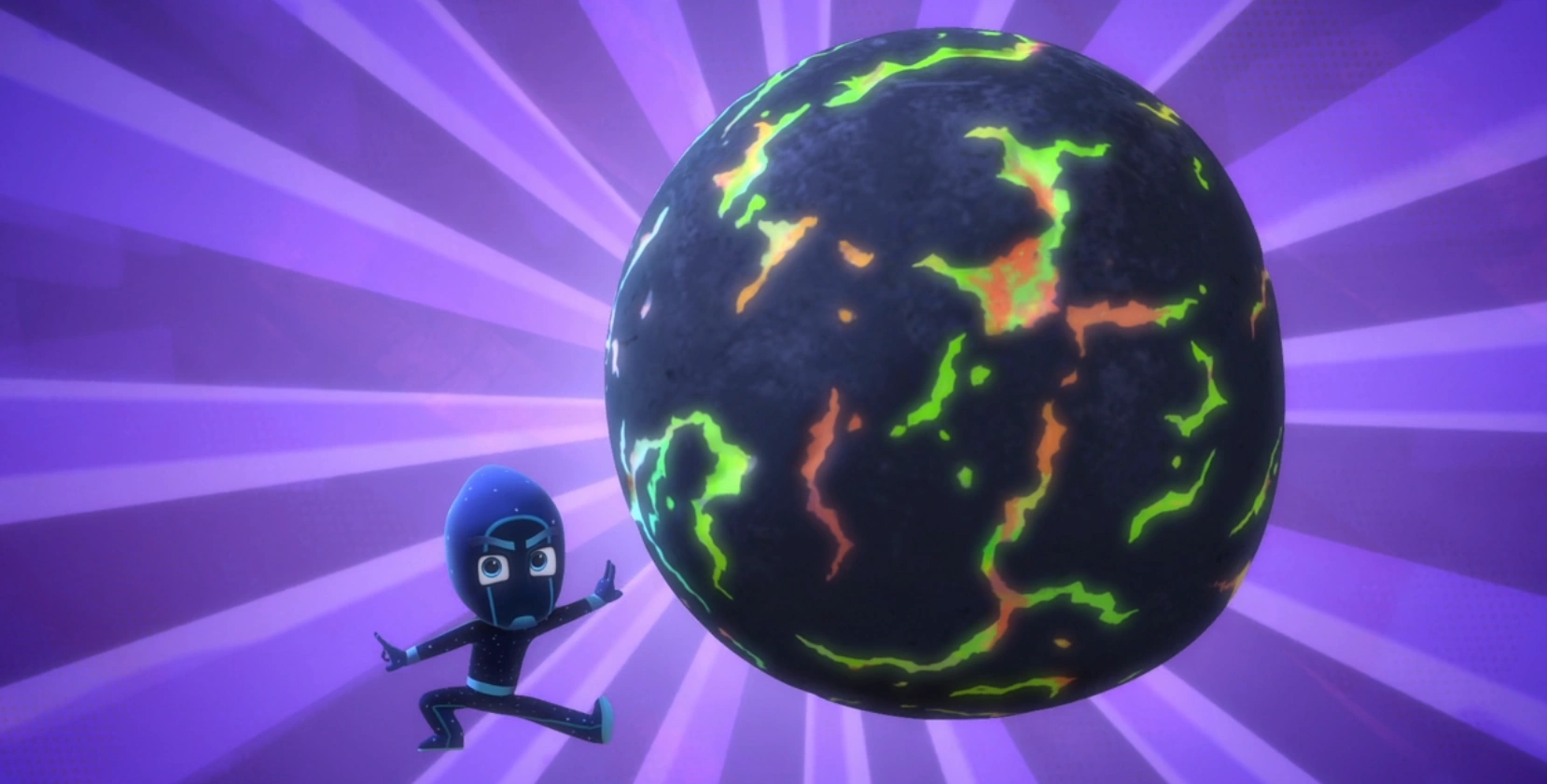 Despite being large, heavy, and very destructive, Gekko can lift and carry it with ease. Gekko was able to break the rock by using Super Gekko Muscles to stop it from hitting PJ Masks HQ, and claimed the medallion inside. He then decided that he didn't truly need it and donated it to the museum.