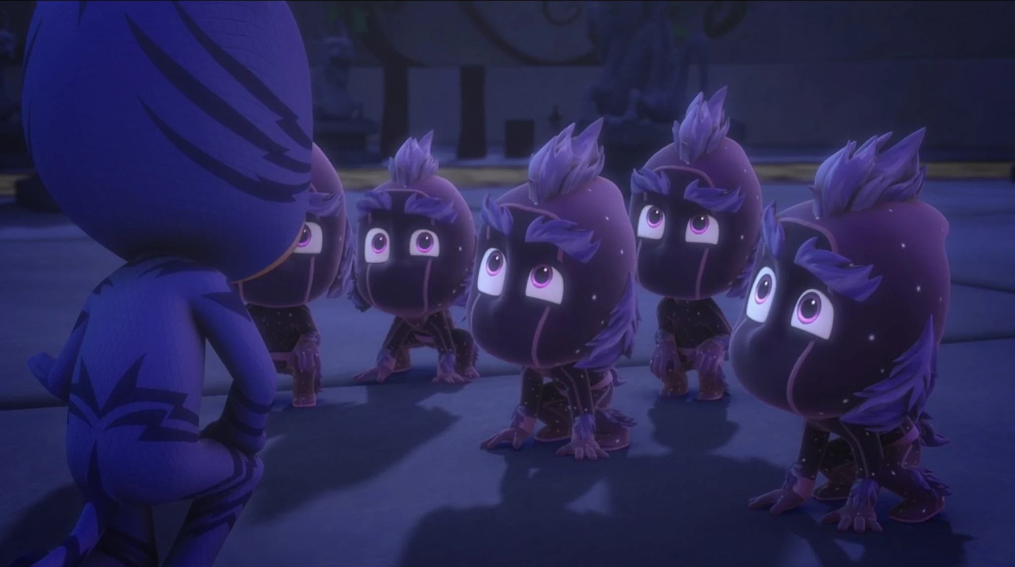 They are former Ninjalinos, who were transformed into werewolf-like creatures by using Sticky Splat to glue fur from the Wolfy Kids to their body. Marvin was the first Ninjalino to accidentally transform this way when Night Ninja ordered his Ninjalinos to pelt the Wolfy Kids with sticky splat, but Rip threw one sticky splat projectile back at them. The following night, the other Ninjalinos repeated the process on themselves so they could abandon Night Ninja and join the Wolfy Kids, until the PJ Masks helped Night Ninja to convince the Werejalinos they were better off as ninjas.